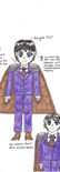 He wears a purple suit jacket with silver epaulettes, a white collared shirt with dark brown satin puff tie, a dark brown cape, purple pants, and short dark brown boots. He gains two silver Saturn with slender silver shaped diamond charm earrings.
